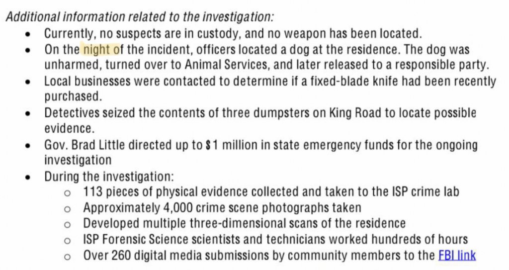 Brian - Do you know, were any messages left behind in the house, like almost symbols from the killer?. Because sometimes, in other cases, you know, if it was like a fetish killing, they would leave something on the body or write something on the wall. Is there anything like that?.