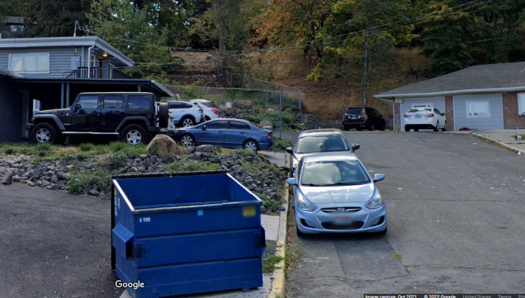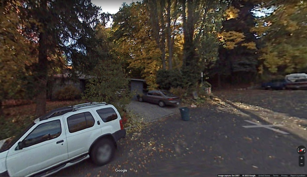 UNSUB spent a great deal of time watching 1122 from a nearby vantage point in the trees; there is an area southwest of 1122 that offers a clear view of the entire back of the house. Google Maps street level of that area is from 2007; it's clear from street level shots from the corner of King and Queen, taken in 2021, that the structure that were in that cul de sac have been torn down, leaving an open area. I've seen a recent photo of the area, showing an abandoned couch, and a clean view of 1122.