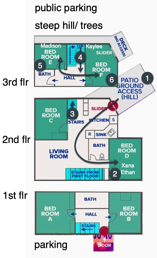 Kaylee and Maddy were found together on third floor in the room with the slider and balcony, again per Brian Entin but I am paraphrasing. They were sleeping together in Maddie’s room.