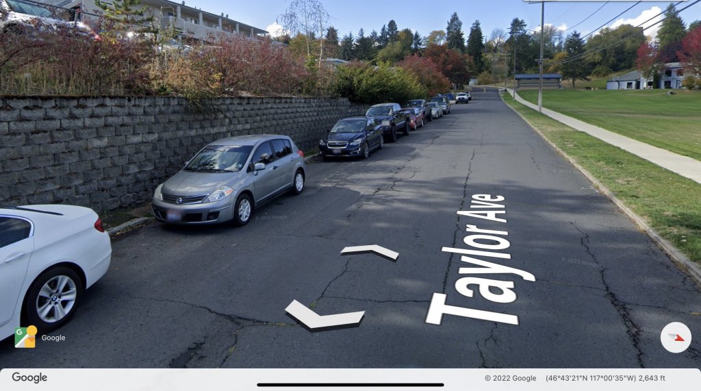 I agree, @otto. I have strongly felt that if, in fact, the killer had a vehicle, he would have parked on Taylor Ave. If he had parked in one of the lots at one of the neighboring apartment complexes, his vehicle would be more likely to be noticed. Lots of folks parked on Taylor as evidenced by the Google Earth view I attached here. I suspect overflow or non residents of the apartments parked here and also folks attending parties at one of the frat houses.