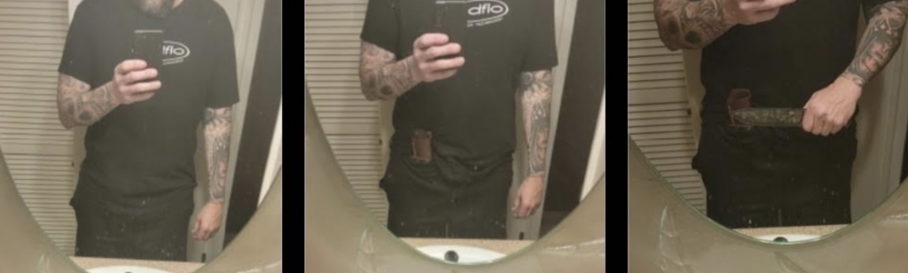 Did you see that guy pull a baseball bat out of his sweat pants the other day? Hiding the knife would be easy, I think. The blood, not so easy.
