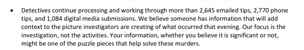 The point was the case comes off like LE is strategically holding back info but out of nowhere the public gets asked about or told about something seemingly simple. Meaning maybe they aren’t holding back much because there possibly isn’t much.