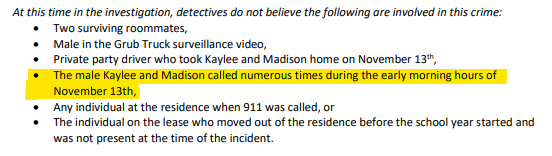 • The recipient of the calls, K's ex, "isn't believed to have been involved" per the City of Moscow homicide investigation update (see below)