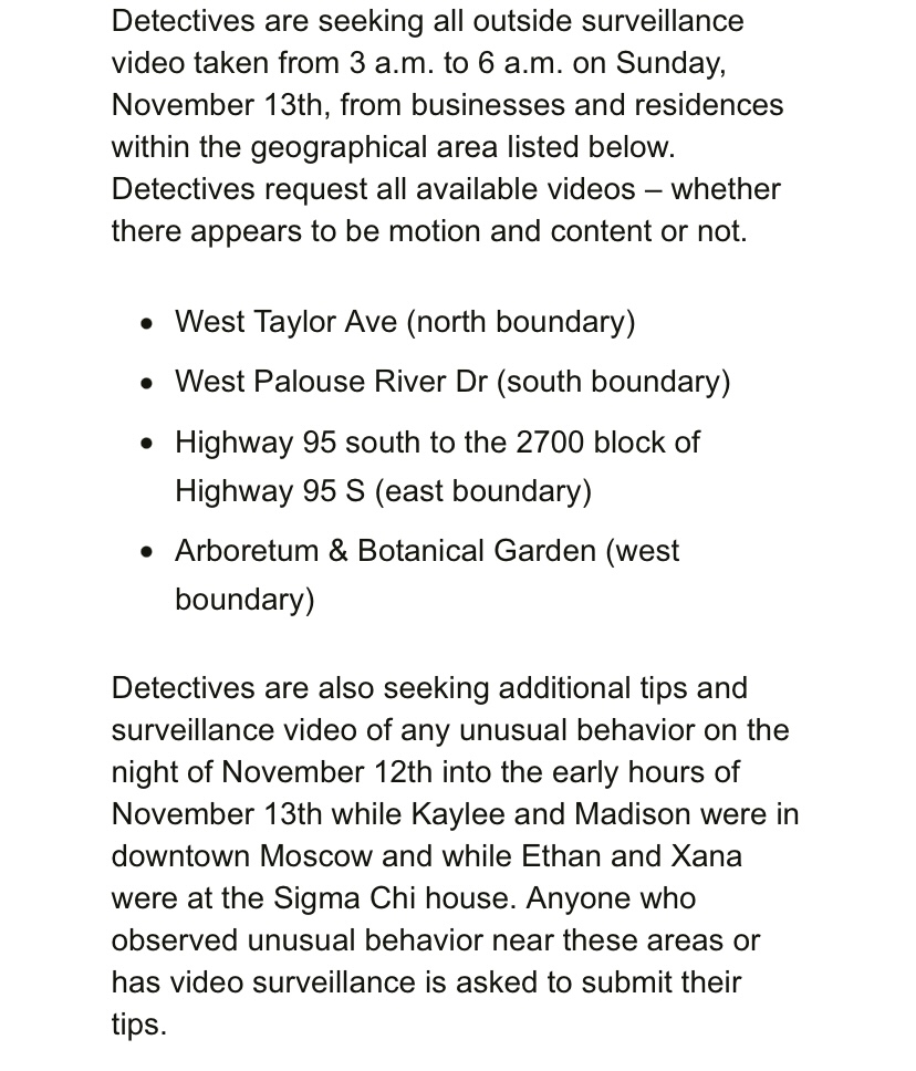 Snip from City of Moscow Homicide Updates:
