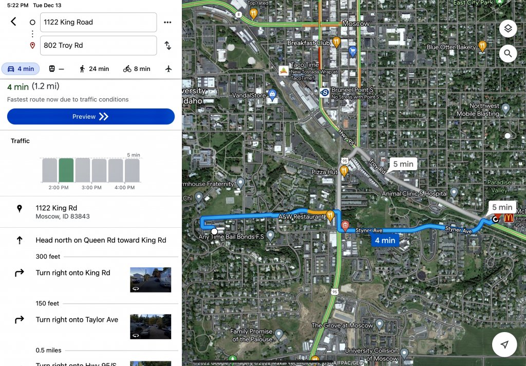 This map shows the distance between 1122 Kings RD and the gas station only. I have no idea which route was taken.