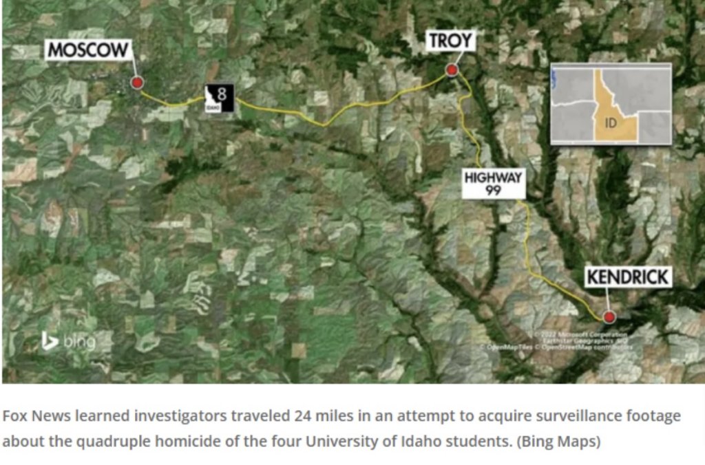 those four streets act as four doorways, one of which you must enter to get to the house or you must already have been in that area at the time. Either the killer crossed over one of those streets or was already in the area at the time of the crime. that's a given. Anything within that area, can then be identified and expanded out, which it seems is what they're doing now based on recent reports imo jmo