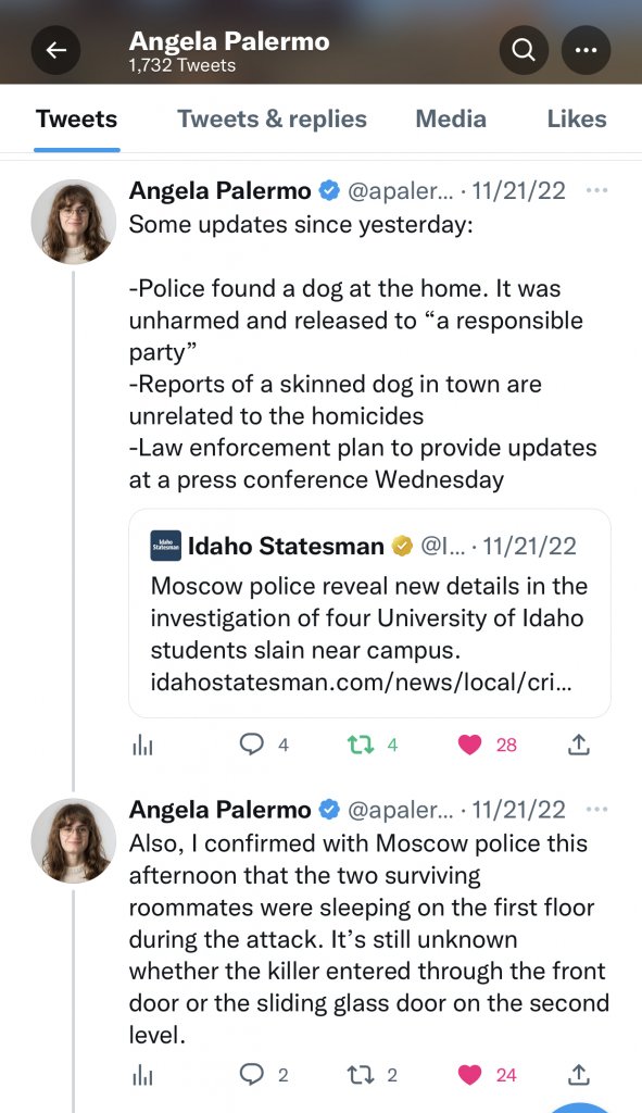 Levy - Chief Fry released a video and said that he was addressing questions about leadership in this investigation. I think I know why he did that. There have been some things said about Moscow PD being too small to handle something like this. Obviously, Idaho State Police and the FBI are assisting with this investigation. He talked about the experience of his command staff. I saw some reporting the other day about the lead detective from Moscow only having two years of experience, but it sounds like he actually has more experience than that, at least, two years with Moscow PD, possibly, but more experience in law enforcement, possibly, military police training and things like that. Can you address that?. Why did Chief Fry feel the need to come out and do that?.