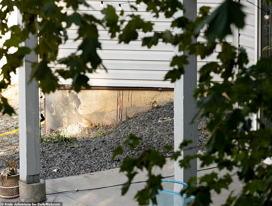 Agreed. This is where the photographer was standing to take the photo that was published as: blood dripping through the wall.Yes this is my opinion as well but I know a lot a people think differently. The stained foundation picture clearly shows a pipe which I think looks corroded. I also attached a picture at the location where the stain is IMO.