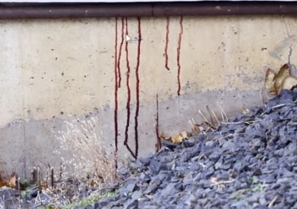 Haunting, isn't it? If this is blood dripping down an exterior wall, I wonder if blood also dripped down an interior wall into the survivors's bedroom. That would be a sight to see upon waking.
