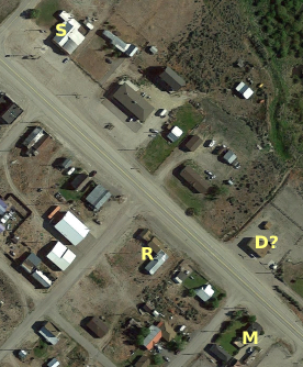 On this image S= Stage Shop, R=Restuarant/Bar, M=a small motel, and D is where I hypothesise diesel possibly is sold.