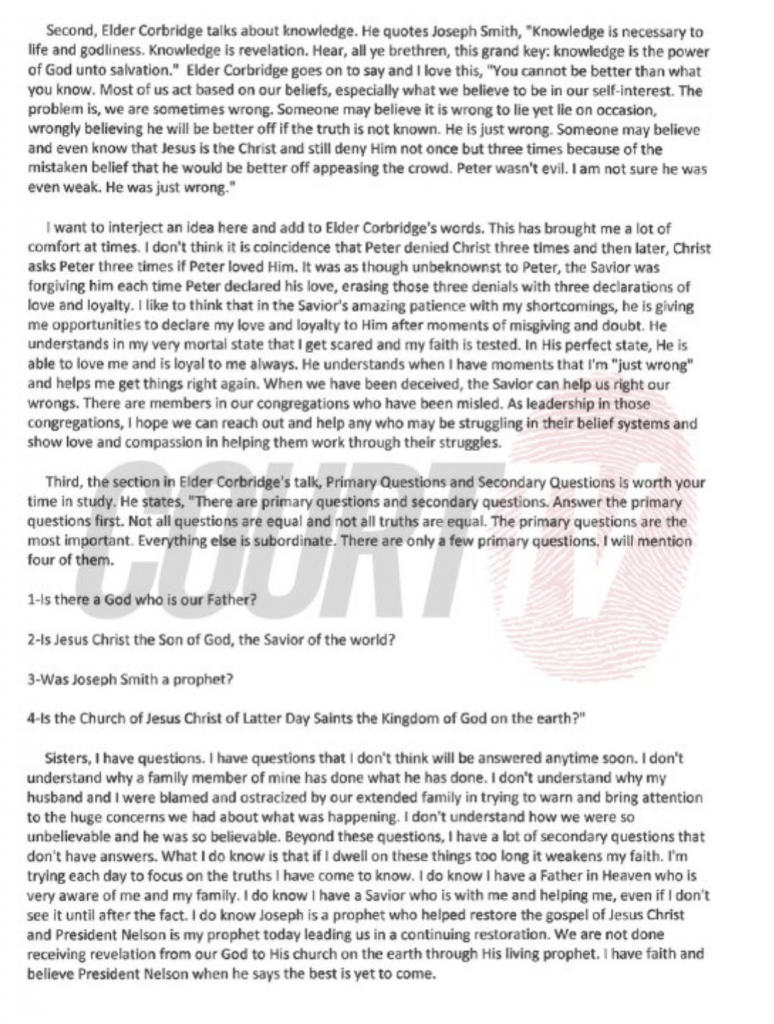 Yes @LDS social scientist, it appears that even Chad knew that the SIL (per MG call) was not on "his page", and he stated such on December 8 2019 to MG. So sad that she was shunned (my word, not technical or religious) and she is having to go through this. As we all know here that follow cases, the living are victims that have to go through heck being associated. It appears to confirm, even from Chad in the MG call, that he was aware. Even BEFORE this hit the news!