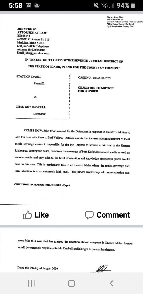 Also, before the Judge came on, the Prosecutor had a funny look on his face. I could hear Vallow and Means talking and laughing in the background and even see their movements. I could not hear what was said but I believe the Prosecutor May have heard. They should be better aware of open mics.