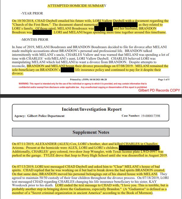 One of the documents Justin Lum has on his Twitter shows that Chad and Lori refer to Brandon as one of the "Gadiantons", an ancient criminal organization in the Book of Mormon. I wonder if this is the basis of the statement Melani's attorneys made when they publicly claimed "Brandon Boudreaux's family is involved in organized crime" in that press release that cost their insurance company $12M?