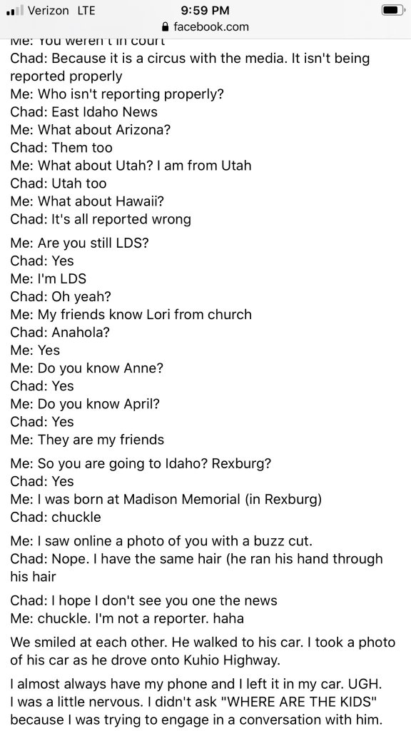 Since Chad apparently hasn't shown up in Rexburg yet, is it possible he went to his parents' house on the way? The sadness that they must have with all of this as he seemed to be a stand-up kind of guy before he met Lori.