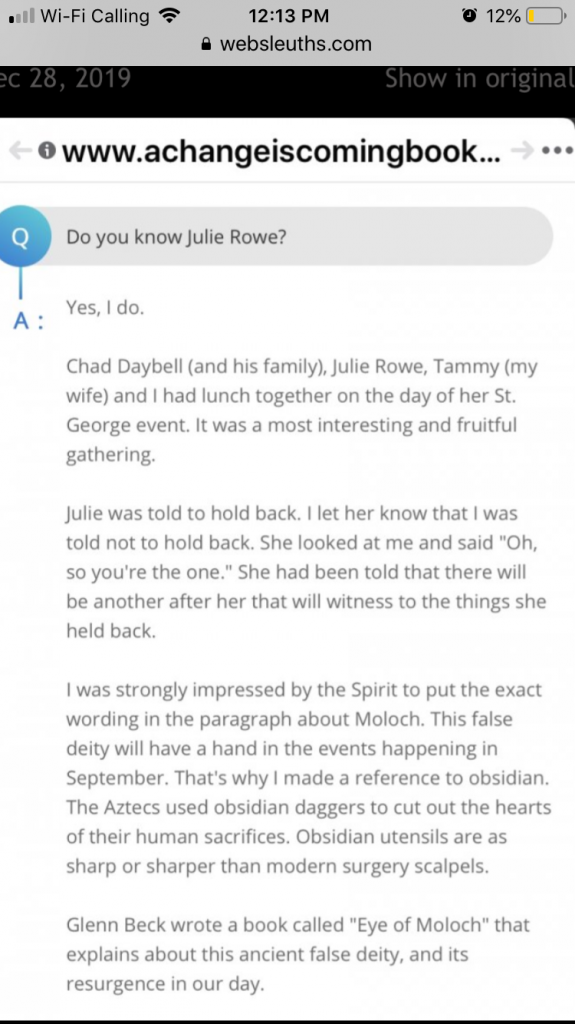 I wonder what year he is referring to when he says September. This seems significant since the children disappeared in Sept and Tylee was last seen in Yellowstone. Does anyone know what Sosa’s book says about Moloch? Could this nutso stuff apply to our case?