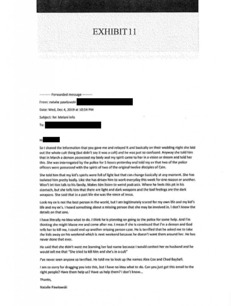 You have to read Natalie’s letter! I can’t get a clear clip of it other than this:So now we know he (IP) was initially scared to death after learning Melani, LVD and CD’s beliefs. Is he lying in that four page document to save himself and appease Melani, LVD, CD? Or, Could he have possibly adopted their beliefs? That many people can’t be that nuts. Gosh, what do you think?