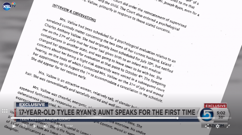 KSL also uncovered court documents from Aug. 2007 of Tylee’s custody battle with disturbing information. A Texas court ordered a psychological evaluation for Vallow after she told social workers that “death would be an option before giving Tylee to her father, Mr. Joseph Ryan, even for a visit.”