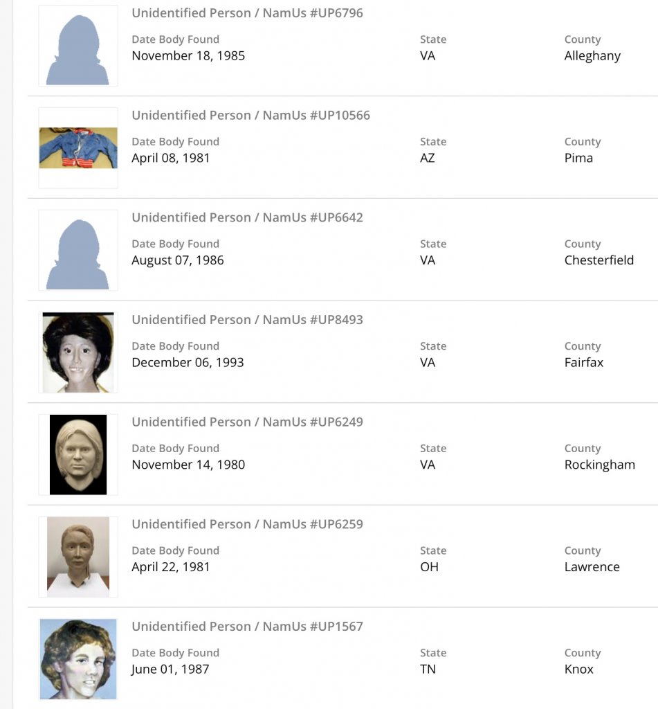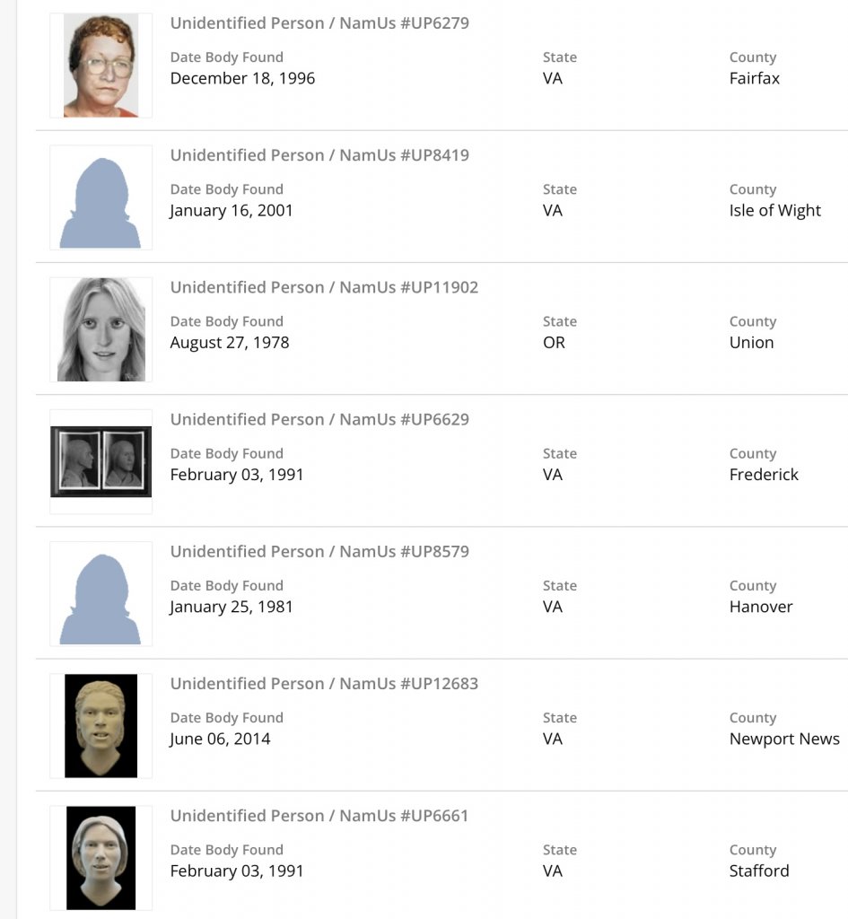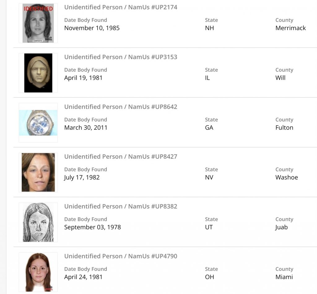 By bringing people, information, forensic science and technology together, NamUs helps resolve cases.www.namus.gov
