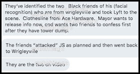 However, even more suspicious, IMOO, on the other side of the coin (being in cahoots with these guys), is that he has insinuated that the attackers were white, and furthermore, that he was "certain" that the people on the video were the guys who attacked him. Yet, no hint in their voice of an African-American dialect? I'm not saying that every African American has a distinct dialect, but he was basically sure it was not African Americans who attacked him -- "and it feels like if I had said it was a Muslim, or a Mexican, or someone black, I feel like the doubters would have supported me much more."