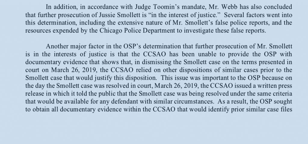 She dismissed Jussie’s original charges based on what she claimed were dispositions of similar cases prior to Jussie’s case that would justify dismissing Jussie’s charges. (Remember her leaked email hustling employees to find similar cases?) She was never able to provide a single case similar to the sweetheart deal Jussie got.