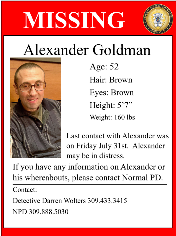 NORMAL (WEEK) -- The Normal Police Department are searching for 52-year-old Alexander Goldman.