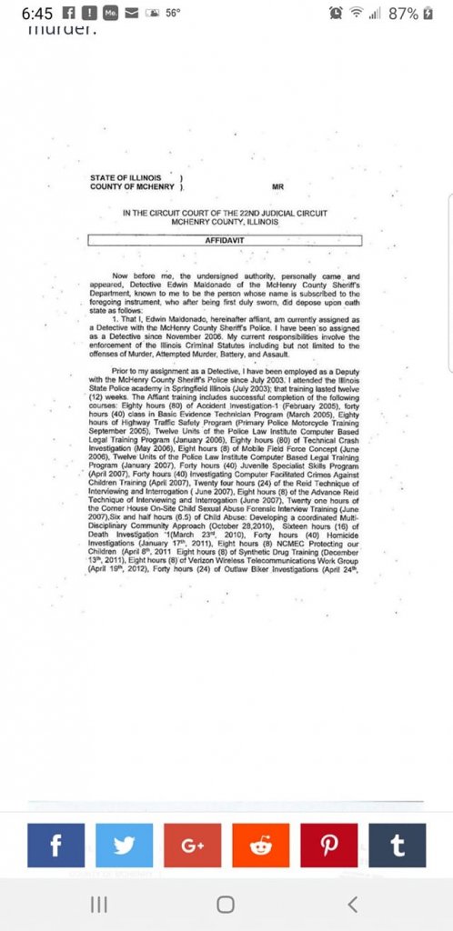 I’m reposting the Crystal Lake PD Affidavit for Search Warrant documents.