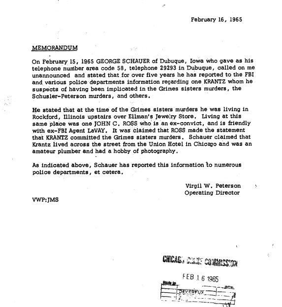 I can't find a lot of information on Walter Krantz other than the fact that he was a pipefitter for the railroad and a photographer. I have a copy of a rather cryptic letter that was sent to the FBI and Chicago Crime Commission several years ago that names Krantz as the perpetrator. I don't have any information if there was any follow-up. It seems that Krantz, for all the suspicion that was placed on him simply disappeared into history.