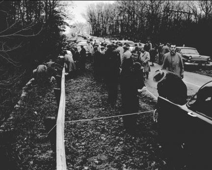 To me, it is impossible for Prescott to have seen the bodies they way he claims. Due to the thickness of the guardrail, the spacing of the posts, the depressed area the bodies were in and the elevation of the road. He was driving in the right lane and he would have us believe that he happened to glance left at just the right moment and see the bodies.