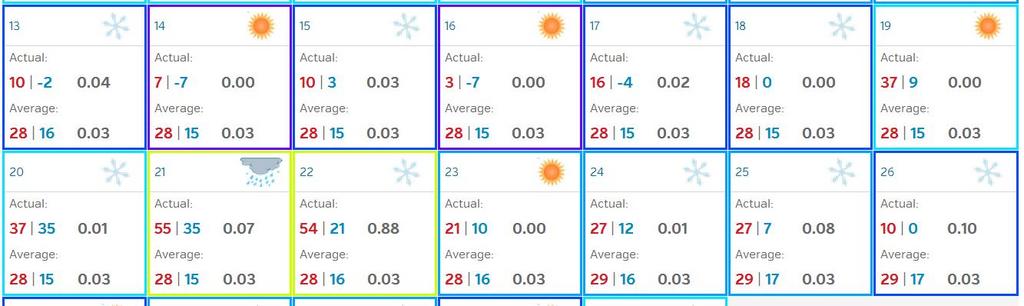 The snowfall was minimal leading up to the 22nd, when it snowed over 8 inches that night.