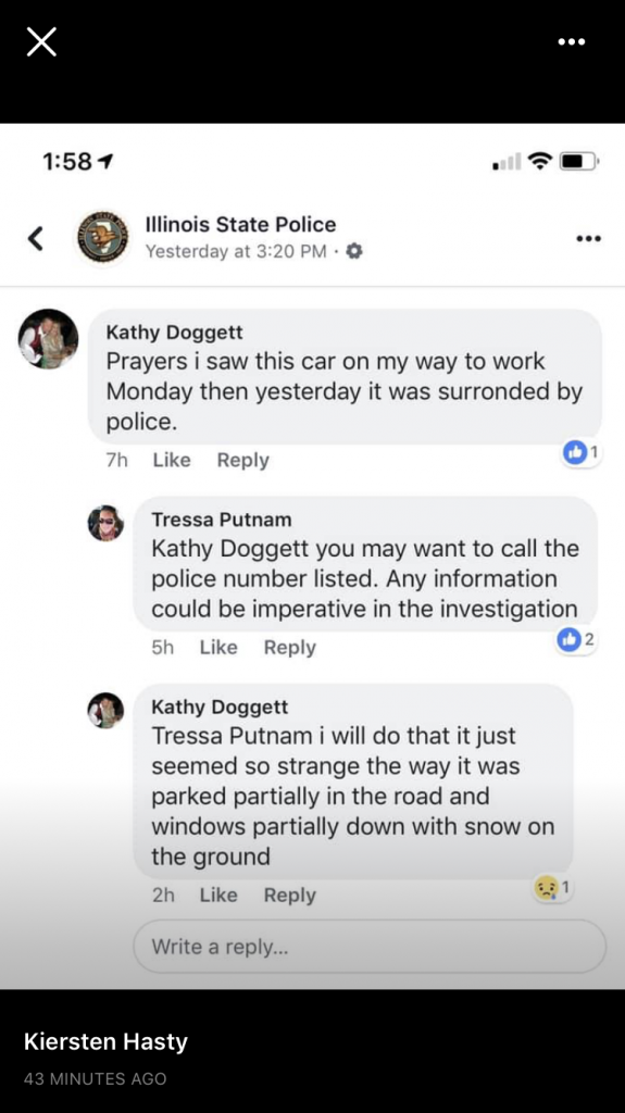 I live in Chicago and have not seen a word about her on either ABC or the WGN networks (two large ones up here).I am surprised that there is not more information available at this point from family and friends - whether released by the media or LE. Clearly, her friends and family were immediately concerned and they are making pleas for help on FB. No information about last confirmed sighting or by whom, where she was thought to be headed...was her car caught on camera at some point?