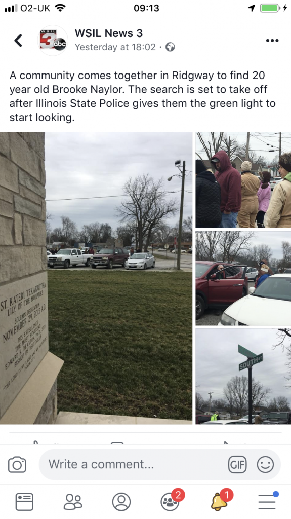 "An anxious crowd is gathering at St Kateri in Ridgway this morning, assembling once again with the ISP, drones, horses, and UTV's. They're prepping to head out in search for missing 20 year old Brooke Naylor or clues as to where she's gone "