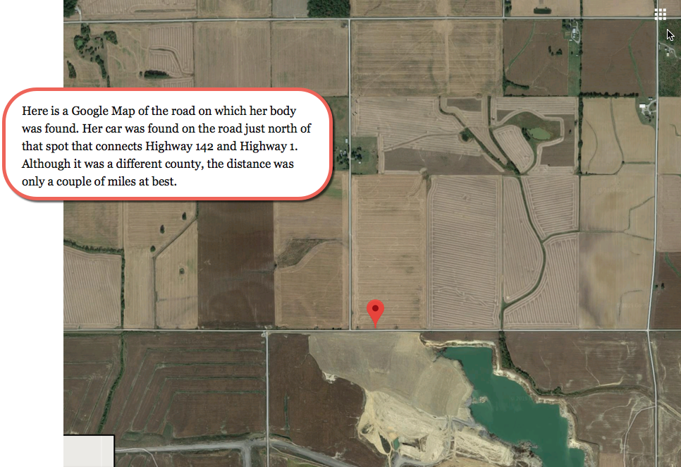 BBM: No the marker on that map is the road her body was found just south of.