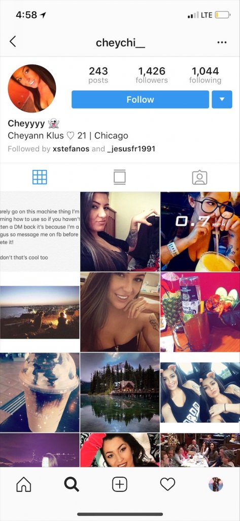 I have been reading the comments on this thread the entire time but haven't said anything. I want to add that last year 2018 towards the beginning of the summer I found Cheyannes instagram account. I would occasionally visit it from time to time when I started noticing the following count starting to dwindle down. It started around like 1,053. (for anyone that doesn't use instagram, the following count can only be affected by a couple of things 1. the account choosing to unfollow someone 2. people deleting their accounts 3. people blocking said account) It went from like 1,053 to 1,051 .. 1,048.. 1,047 so on and so forth. It seemed a bit odd so I started to take screen shots and I actually shared them with her missing persons page and they shared them with the police. To this day the following count is now at just 1,019. While the followers count hasn't really changed too much. I just think 34 is such a drastic change in following count. I will continue to watch, no idea if it means anything at all. It could be completely coincidental, but it just seems too weird. I had been keeping it to myself for a while, but I thought I would just put it here to see what others think. Something just seems off about it.