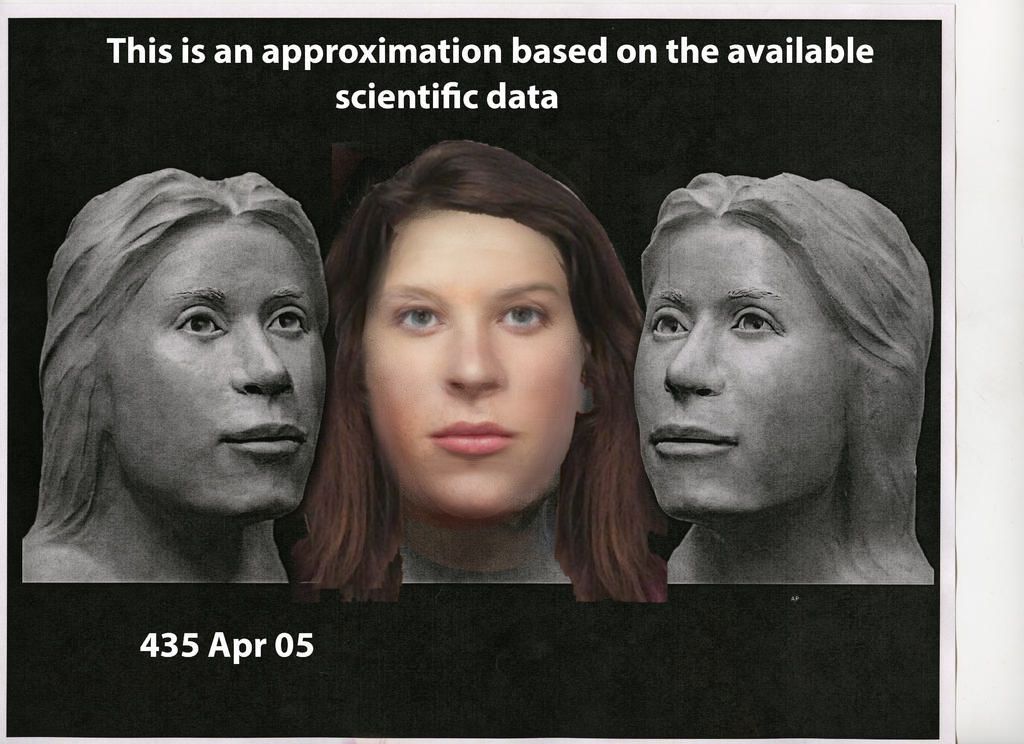 I modified the sculpture to give a rough estimate of how she might have looked.