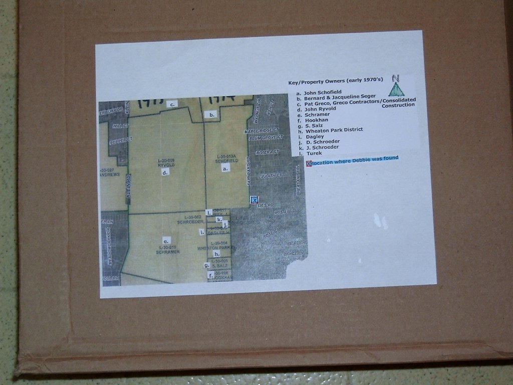 Winward1, have you looked at a map with the points of interest in this case? I'm terrible at maps, but if you Google map Fair Oaks and Lies, Wayne Township, you will see the proximity from the school, Ben Franklin Middle school on St. Charles. Debbie's home was on Wynn, just west of Fair Oaks and just south of Lies. What was the Schofield Farm is the huge area on the west of Fair Oaks and north of Lies which is now a forest preserve. The location of the Schofield home on the farm was west of Fair Oaks and all the way up north on Fair Oaks and Big Horn Trail. The location Debbie body was found was not within view of the home.
