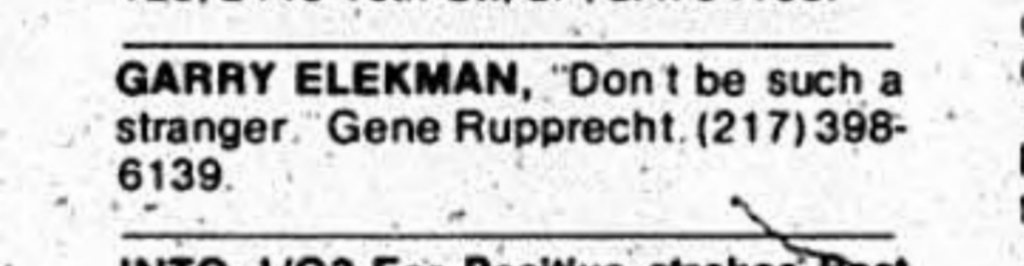 The 217 area code in the ad GR published is in Champaign Urbana. GR was likely a student at University of Illinois at the time he wrote the ad.