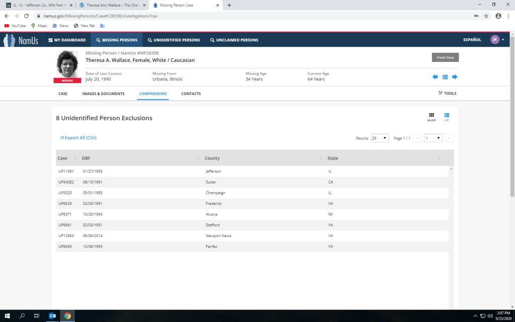 Did you ever hear back from NamUs about the possible match?I sent an email to NamUs rep Allen Neal requesting a comparison of Jane Doe and Mary Elizabeth.