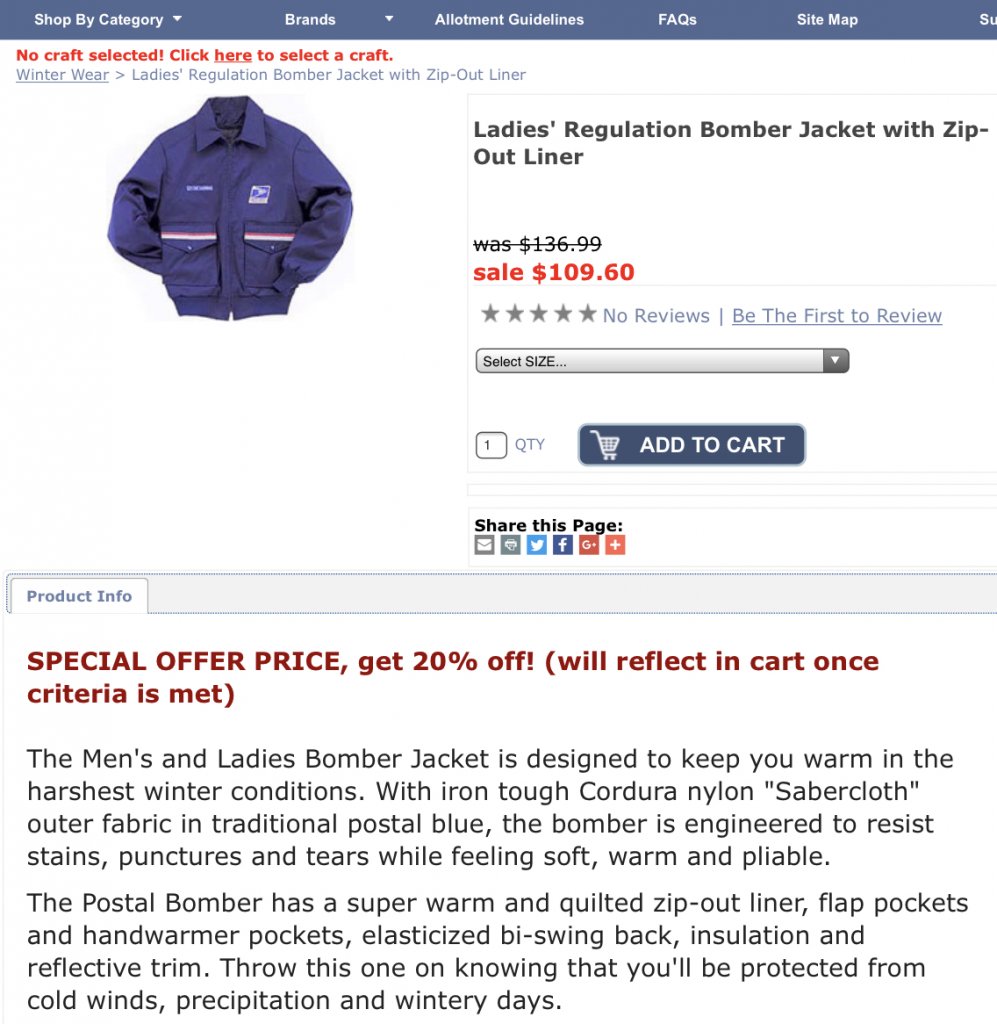 Also, as the bag comes off, you can see there is some sort of design across the back of the top the woman is wearing. Could it be a reflective trim on the back of a USPS jacket like this one?