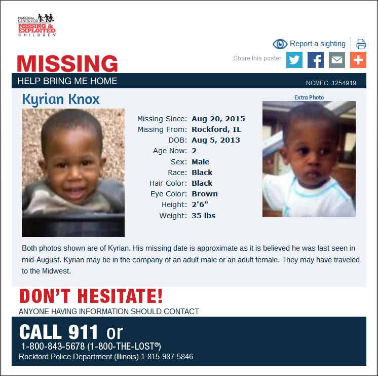Found Deceased IL - Kyrian Knox, 2, Rockford, 20 Aug 2015 - #1