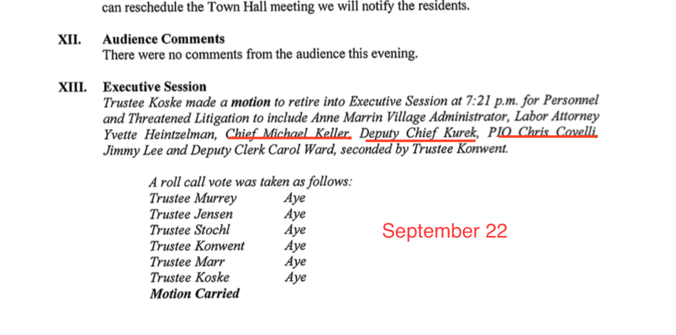 In September, village officials released a statement saying that at the time of Gliniewicz's death, Fox Lake had been in the process of conducting an "inventory review" of police department procedures and equipment following former Chief Michael Behan's retirement Aug. 28.