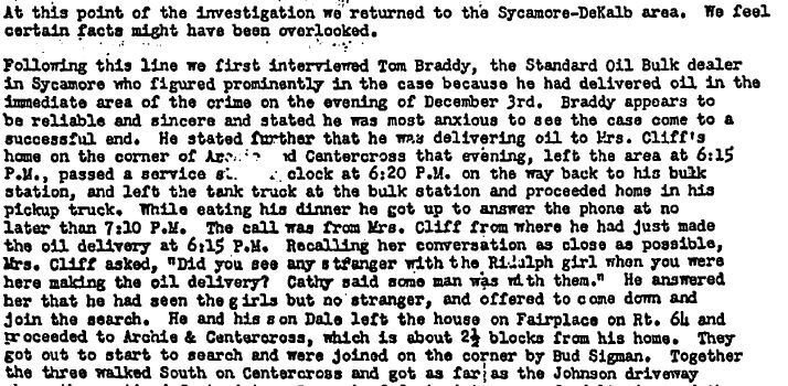 Their opinion was based on an interview with the oil truck driver. Because of the footsteps leading to the garage, and through back lots, the investigators also were of the opinion that the man was a local.