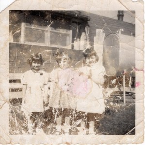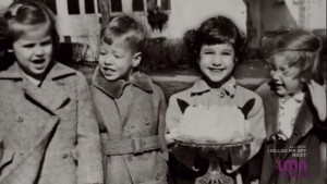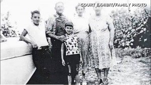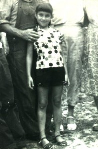 The 2nd photo: taken on vacation in Iowa with family, shown in the picture are: Charles (Maria's brother), Grandfather, Frances (Maria's mother), and grandmother at the end (far right) and little Maria standing at the front. Taken in summer 1957.