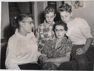 Photo 4: "Mrs. Frances Ridolph, is comforted by her other children as the family keeps a vigil in their Sycamore home for missing Maria, 7, who disappeared Tuesday. The other children are Pat, 16; Kay 15, and Charles, 11. A house-to house search for the missing girl was taking place in Sycamore today." Dec 6 - 1957