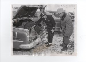 Photo 1: "Mayor Harold Johnson (right) and assistant Police Chief Richard Mattis of Sycamore search a trunk of one of the hundreds of cars stopped in police road block at Sycamore during search for missing Maria Ridulph, 7. Police have learned that Maria at times hid in the trunk of her father's car. Dec 11 1957."