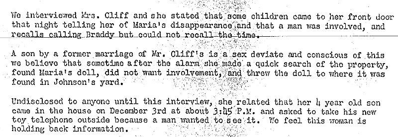 The fact that Mrs. Cliff was not charged with tampering with evidence (assuming it is true) speaks volumes on the ineptitude of law enforcement at the time.