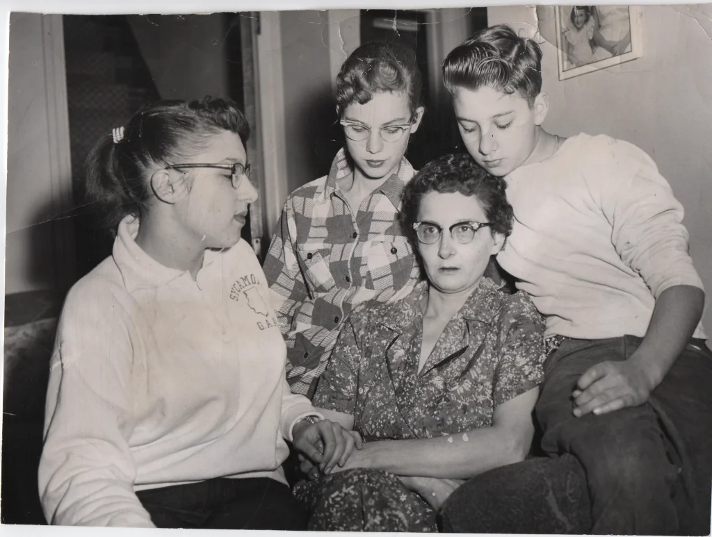 here is a press photo that i have. It was taken and published in 1957 during Maria's abduction. In the press photo you see Maria's griefing mother Francis (middle), Chuck (age 11) (right of photo), Kay (age 15) next to brother Chuck, and Kay (age 16), on left of photo.