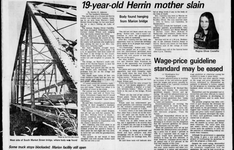 I seem to be a few years late to this post, but hopefully someone sees this - Regina was my 3rd cousin, she was killed 2 days before my mother's 7th birthday. I've tried for many years to find information online about her case, but always end up back in the old Marion news archives. I grew up in the area but live out of state now, and intend on doing better sleuthing when I come to visit - but I'm so interested in what anyone has to say on this - how many people outside of little Williamson county have heard of her story? I don't seem to know much more than what's already been commented, but again - hopefully someone will see this & spark the conversation again