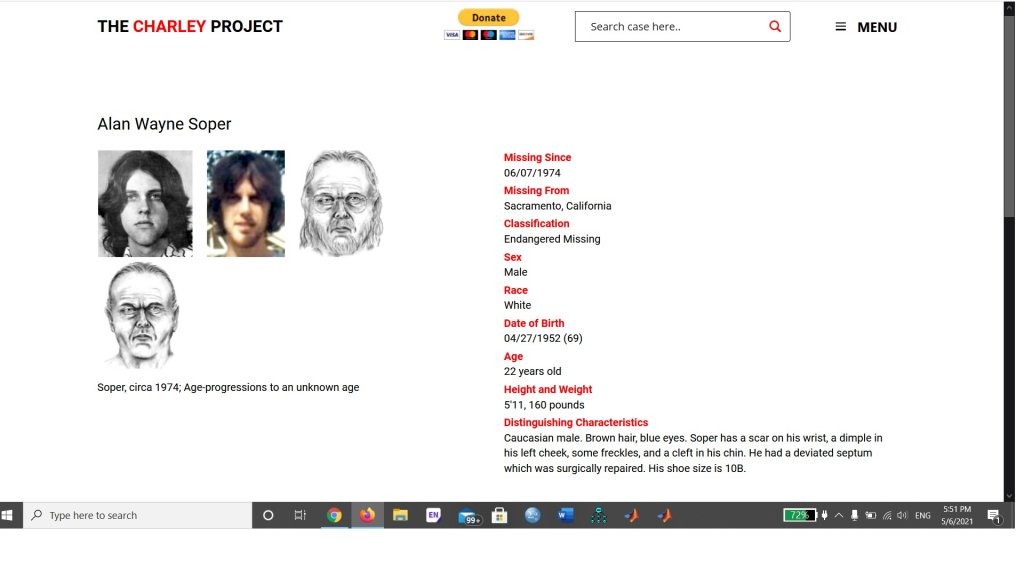 I think Body no. #5 is very likely probably this guy Alan Wayne Soper – The Charley Project