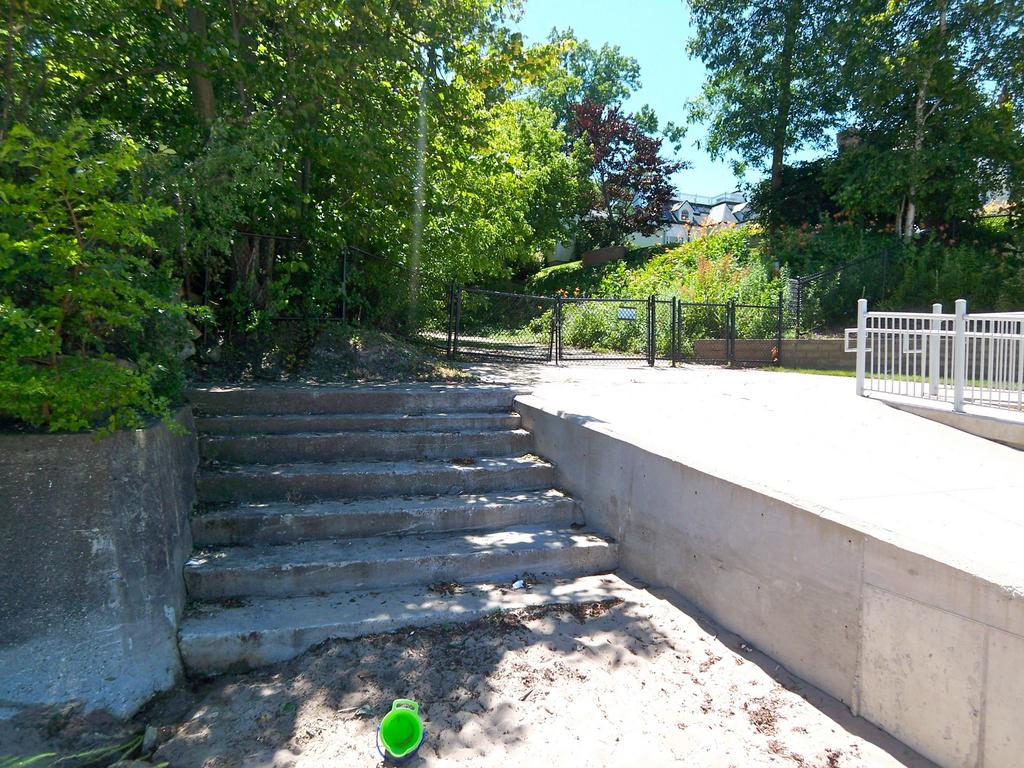 This is the end of Devonshire at the beach (where you seen the fence. The stairs look to go way back. The newer concrete is part of the KW beach infrastructure that looks to be quite new.)