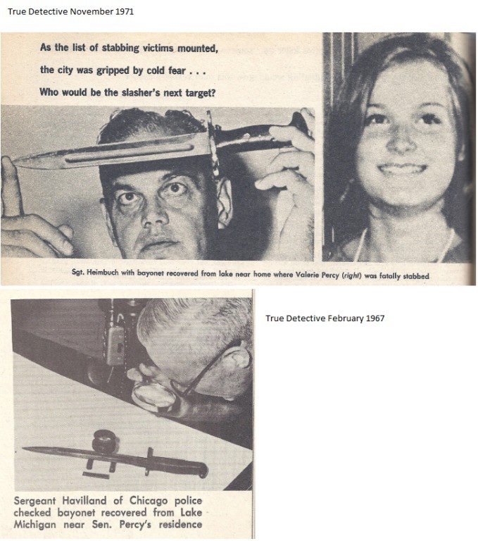 I recall seeing a photo posted somewhere in these threads of a bayonet found by divers in the water not far from the Percy house. As I recall it was a U.S. model 1905 with a 10 inch blade. This type of bayonet was origionally designed for and used on the 1903 "Springfield" rifle and later the M-1 Garand rifle. Does anyone know if the wounds suffered by Valerie matched that bayonet?
